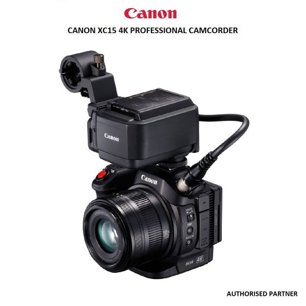 To provide improved stability for the supplied MA-400, the Canon XC15 4K UHD Camcorder is fitted with a cold shoe mount that is longer than that offered on other comparable Canon cameras. The cold shoe's added length provides a larger support area for the adapter and any compatible microphone mounted within the MA-400's integral mic mount. Because the cold-shoe mount does not have compatible data contact pins, the XC15 4K UHD Camcorder does not support still-image sync shooting when using Canon Speedlite flash units.