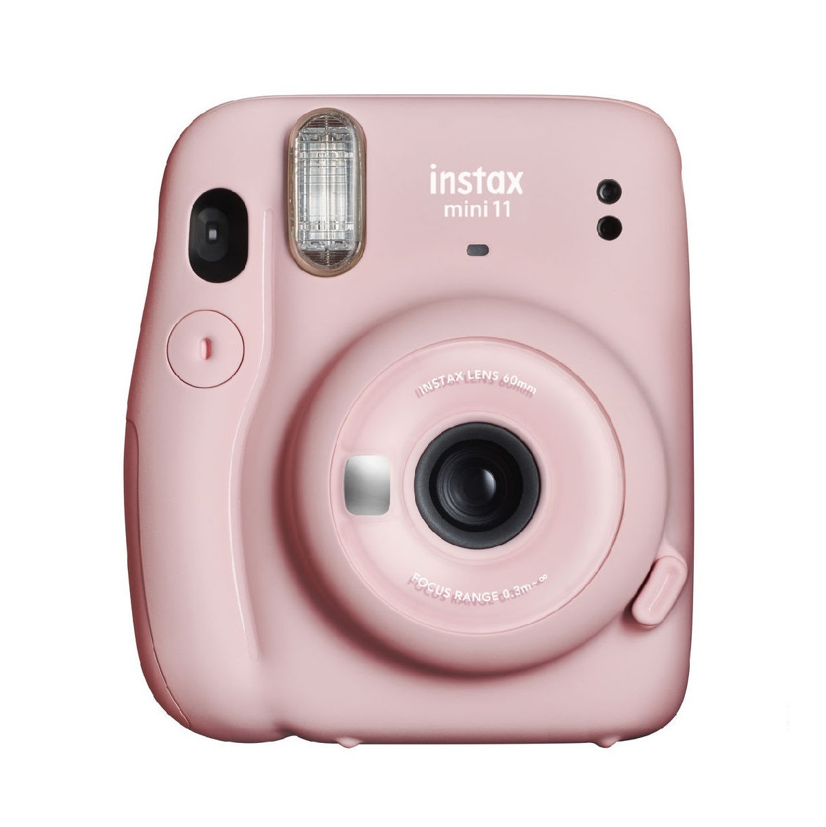 A fresh take on a beloved instant film camera, the blush pink FUJIFILM INSTAX Mini 11 is a sleek, fun, and stylish camera capable of producing instant credit card-sized prints. This model has been updated with an automatic exposure function that no longer requires manual adjustment for different lighting conditions, and the built-in flash benefits working in low-light conditions. It has also incorporated its close-up shooting capabilities into the 60mm f/12.7 lens design for seamless shooting from 11.8" to infinity. Rather than needing to use a lens attachment, this integral design means you just need to extend the lens barrel to the Selfie Mode position for close focusing from 11.8" to 19.7", and a built-in mirror on the front of the lens allows for perfectly composed selfies. The slim camera design also features a new debossed INSTAX logo over the film door, a transparent ring design over the lens, and the classic window viewfinder, and it includes two fun accessory shutter button covers.