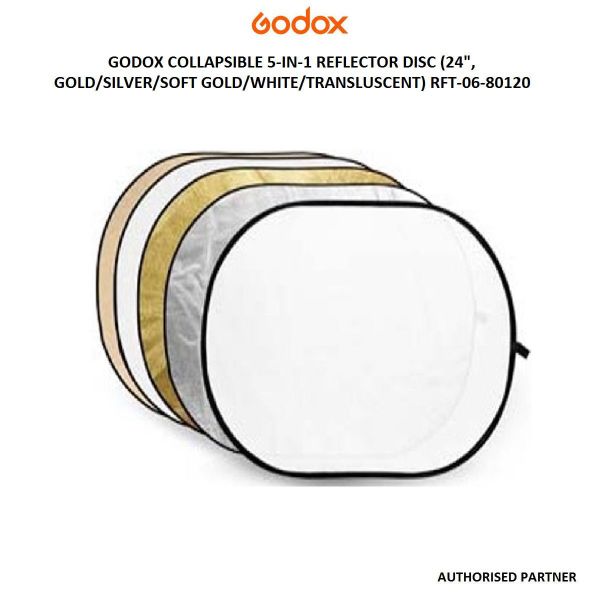The Collapsible 5-in-1 Reflector Disc from Godox is a versatile lighting tool for in the field and in the studio. The reflector features a zippered slipcover and provides gold, silver, soft gold, white, and translucent surfaces.