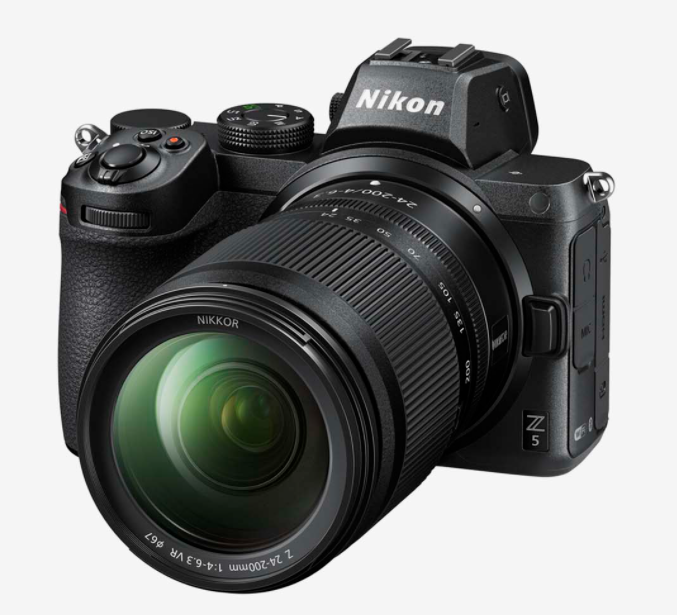 Compact and capable, the Nikon Z5 is an FX-format mirrorless camera with a well-rounded feature-set to suit both photo and video needs. Its 24.3MP CMOS sensor and EXPEED 6 processor afford wide sensitivity to ISO 51200, quick shooting at 4.5 fps, and UHD 4K video at 30 fps.