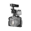 SMALLRIG Cage with Helmet Kit 2052 includes GH5/GH5S Cage 2049 and Helmet Kit 2017. GH5/GH5S Cage 2049 attaches to Helmet Kit 2017 via two 1/4’’ counterbores. The handle on Helmet Kit could be adjusted up and down and forwards and backwards for balance as per your needs during shooting, and it could attach microphone, magic arm, Rod Clamp 1995 and Arri-standard locating points extension etc. The top plate is utilized to provide solid protection for DMW-XLR1 microphone adapter and it is also equipped with an abundance of 1/4’’ and 3/8’’ threaded holes for DIY operations. The cage benefits your GH5 camera in video production by strengthening protection and stability and providing more mounting options. The cage fits the camera perfectly, and it does not block any access to the SD card slot, battery compartment, and all camera controls. In addition, The cage is good for thermal dissipation of camera and prevents it from twisting.