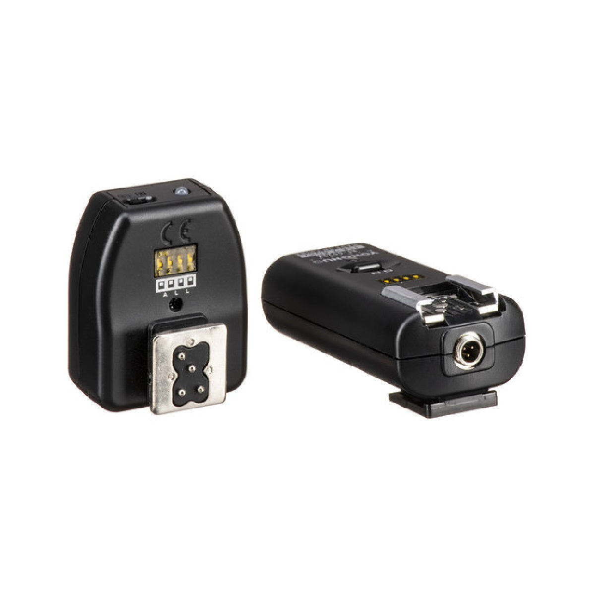 Remotely trigger select Nikon flashes and cameras with this RF-602N Wireless Flash Trigger Set from Yongnuo. It includes both a hot-shoe mounted transmitter with a PC sync port and a receiver with a 1/4"-20 female mounting thread, a female hot shoe, and a proprietary LS-02 output port. They function with a FSK 2.4 GHz frequency on one of 16 channels and have a far-reaching range of 328'. It can also sync at speeds up to 1/250 second and has dual-function shutter release with half-press and full-press capabilities.